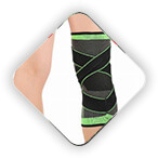 Наколінник еластичний з фіксуючим ременем Охоплює коліно та прилеглу область , забезпечуючи середню фіксацію і не дозволяючи колінній чашці рухатися.