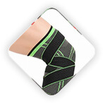 Наколінник еластичний з фіксуючим ременем Охоплює коліно та прилеглу область , забезпечуючи середню фіксацію і не дозволяючи колінній чашці рухатися.